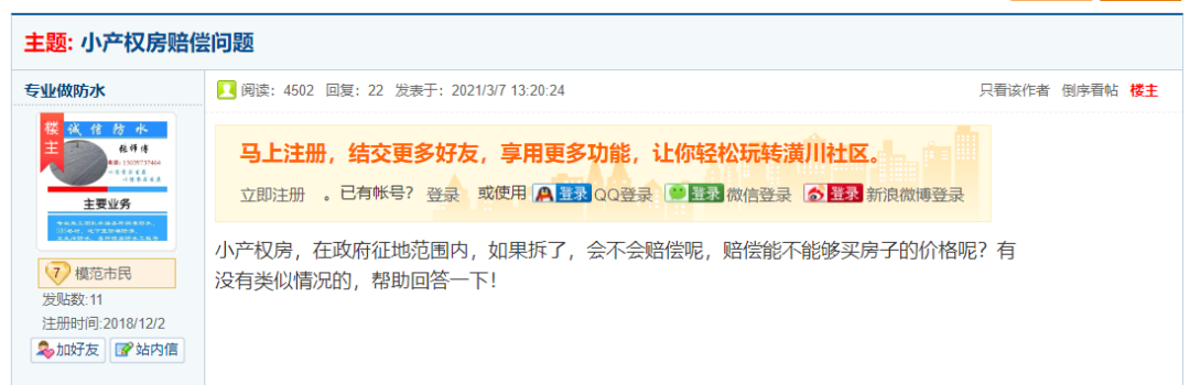 1、听闻要征地,那我们这些小住宅产权怎么办?近日,小贴士在网上U31KB815SG的时候发现了有关小住宅产权房的帖子,截屏如下: