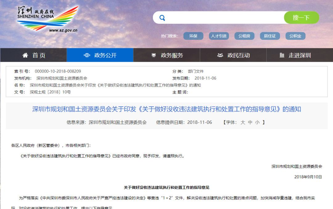 一、深圳新文档:违规建筑充公后转为国有金融资产,从严继续执行!